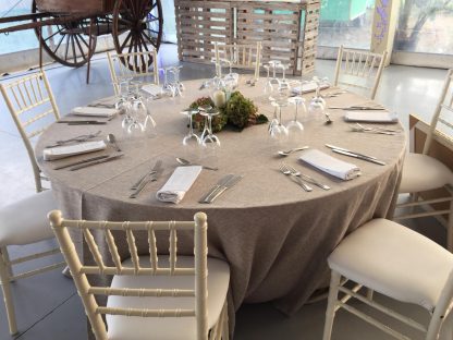 Todo tipo de mantelería, vajillas, cristalería, cubertería y complementos que necesitas para tu evento.